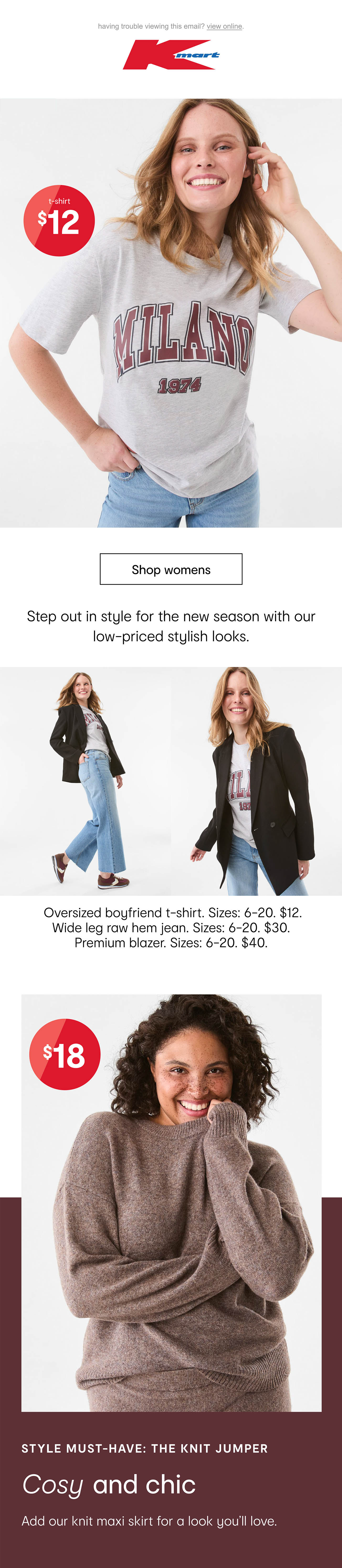 Supporting Kmart's Autumn/Winter range, this campaign drove sales on the website, OOH and across socials. Highlighting low price leadership as well as trend-forward products and layering, the campaign drove +4.5% samples YOY (surpassing the business's +3% goal) and the first week of the campaign saw the biggest week ever in knitwear, +58%.